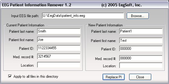 Software Projects Currently in Development: EEG Patient Information Remover - useful tool for EEG researchers. This tool performs elimination of patient individual information from EEG exams in different formats. It can be used for publications of EEG data for researchers. Beta version for BNI-1 format is available now. >> download Image of EEG Patient Information Remover: